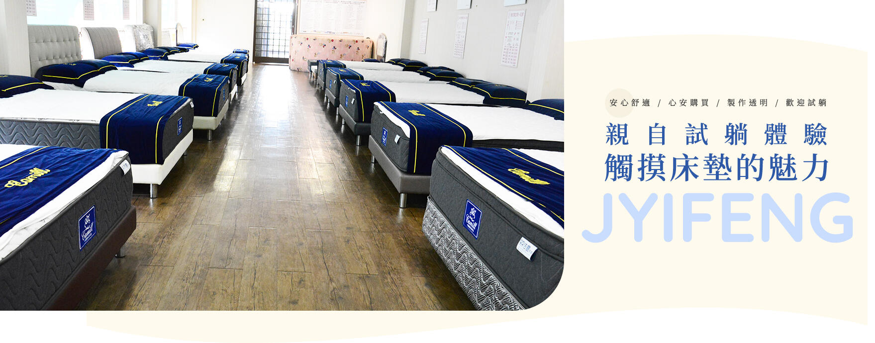 佶豐床墊主要銷售三種床墊(傳統連結式、獨立筒式、乳膠床墊)。在過去30年銷售經驗中,與不 少公家機關、醫院、飯店民宿等大型機構合作,如今我們的事業版圖仍然在擴建中。