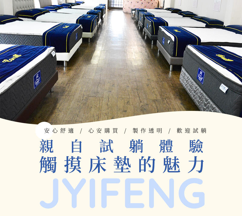佶豐床墊工廠於台中潭子開業超過30幾年,擁有豐富的製造床墊經驗 ,除了基本規格之外,也有個人客製化床墊零售。甚至為了讓每位消費者都能買到合適自己的床墊,也會建議客人要先至工廠試躺確認軟 硬度後再行下單,真的很貼心啊!